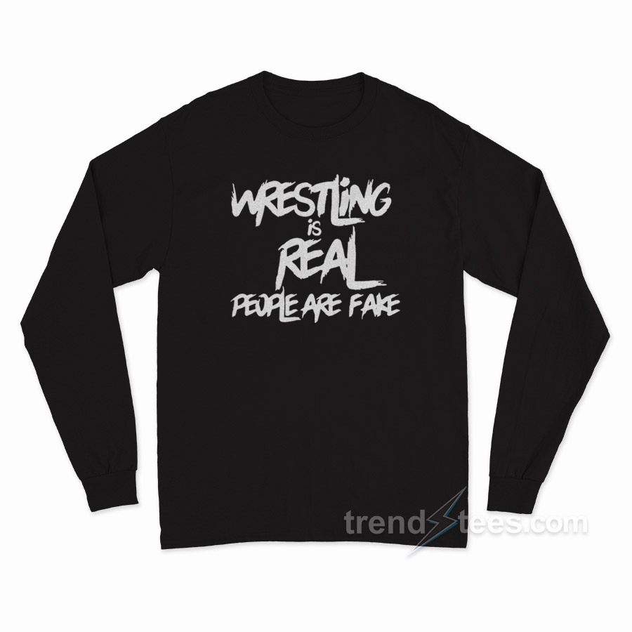 Product Trendstees Everything is hand printing by our team at our warehouse using Eco-friendly inks and suppliers. All designs Wrestling Is Real People Are Fake Long Sleeve Shirt The ink is pressed into the fabric permanently and healed at high temperatures. It makes the image will not fade, crack, or wipe. This long sleeve t-shirt can be the best gift for your loved one.